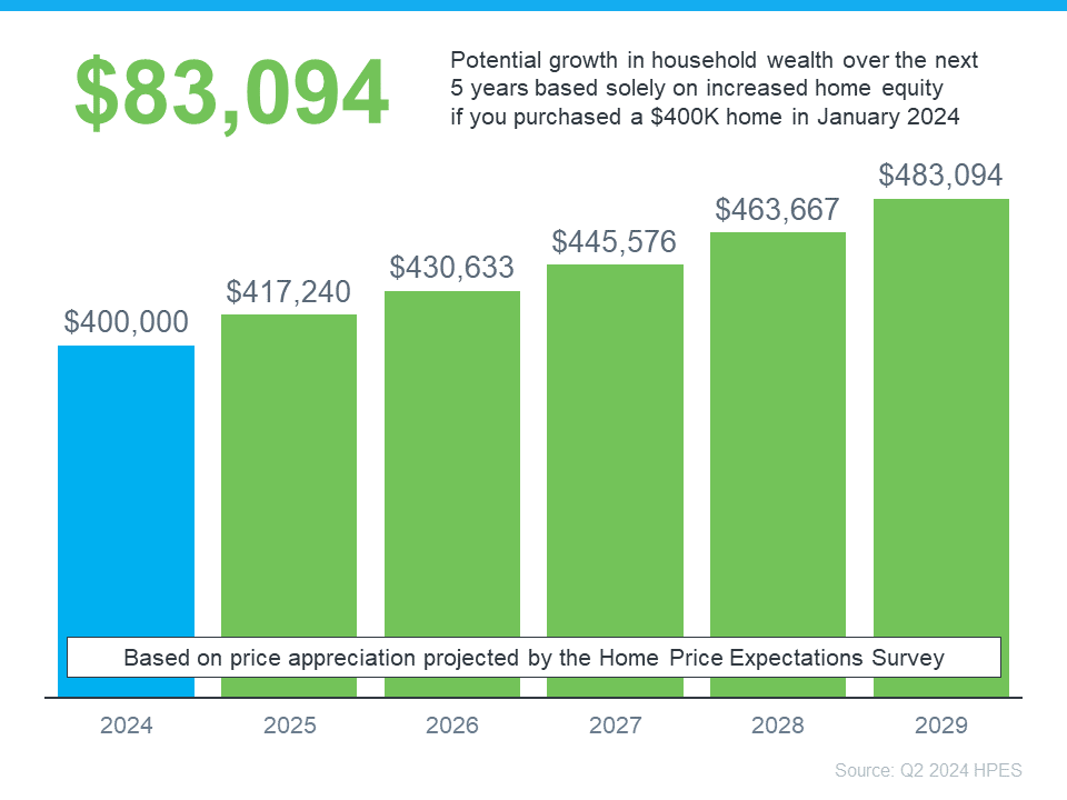 In this example, let’s say you went ahead and bought a $400,000 home at the beginning of this year. Based on the expert forecasts from the HPES, you could gain more than $83,000 in household wealth over the next five years. That’s not a small number.